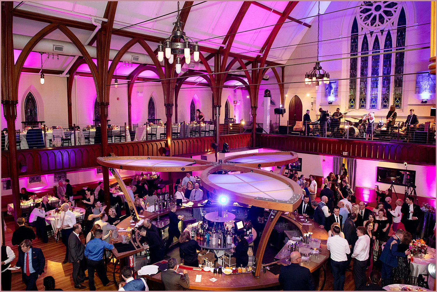 Grace Events is a beautifully restored historic venue in the heart of downtown Portland. Originally built in 1856–57 as Chestnut Street Methodist Church, Grace is one of the city’s few remaining examples of Gothic Revival architecture left standing after the fires of 1866. Now under new ownership, Grace enters an exciting new chapter, all the while honoring its rich past. Original Italian stained-glass windows, repurposed pews, and hand painted wood grain throughout offer guests a glimpse of the past, while the beautiful center bar and open concept kitchen firmly root this spectacular space in the 21st century.